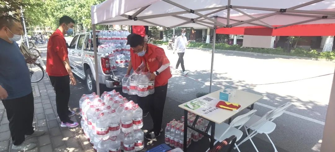 上午11点,一辆小货车停在了位于紫荆操场北侧路边的紫荆水站旁边。李昊阳与车辆九党支部的志愿者们身穿红马甲、手臂上戴着“战疫‘清’年突击队”的黄袖标,合力将成箱的矿泉水搬下车,整齐地码放在水站的小棚子下。在学院“党员是永不换届的班委”“主动冲锋在前,担难担重担险”的号召下,全体车辆九党支部党员热忱地参与到抗疫各项志愿工作中。