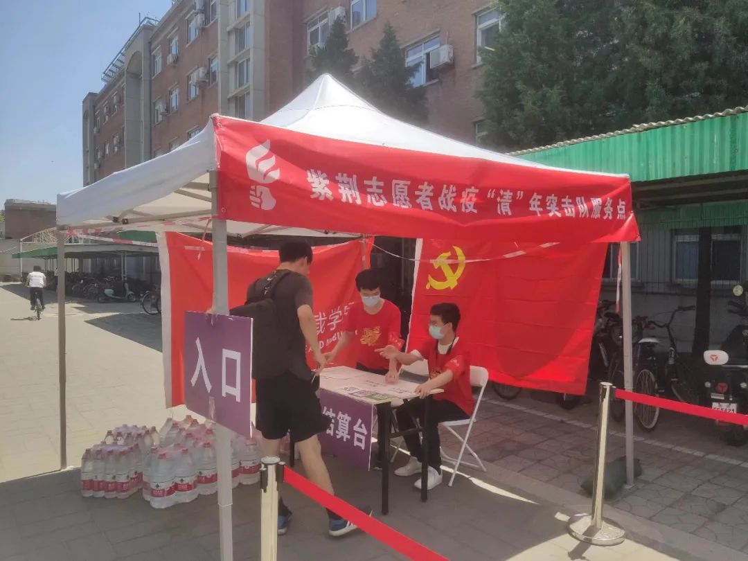 未央书院的环建11班以党课小组的形式集体参加了战疫“清”年突击队,由15人组成的团队“包场”了紫荆核酸检测点一上午的志愿工作。环建环11党课小组在之前的党史学习的活动中,充分探讨过党的“为人民服务”的宗旨,战疫“清”年突击队则为他们提供了一个把这些理念真正落实到行动中去的机会。“我们希望积极分子能够发挥榜样带头作用,大家一起来为学校的抗疫工作做一些贡献。”环建11的党课小组长何天怡说。