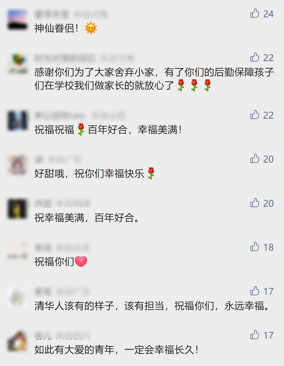 孙杰与未婚妻的故事被网友用“神仙爱情”来形容。“舍小家为大家”,看到教职工们的辛勤付出,在校生和家长们表示十分感谢。大家纷纷为孙杰和未婚妻送去祝福,并坚信:众志成城,战疫必胜。“所有准备与延期,也为待到光明和煦。”祝福百年好合,一起为抗疫加油!
