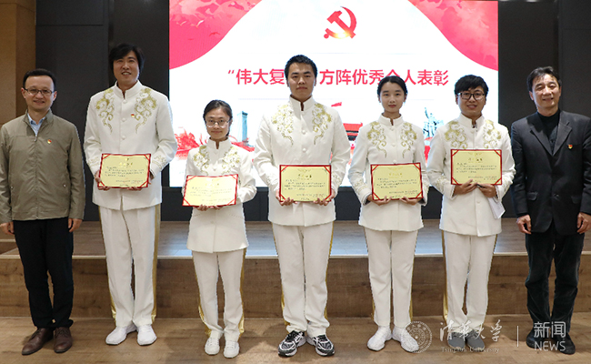 会上,与会师生集体学习了习近平总书记在庆祝中华人民共和国成立70周年大会上的讲话,观看了庆祝新中国成立70周年大会群众游行及清华师生组成的“伟大复兴”方阵、合唱、志愿者服务历经两个多月专项训练纪实视频,邀请现场观礼教师代表、参加庆祝中华人民共和国成立70周年活动的师生代表交流分享体会,对学院师生参加庆祝中华人民共和国成立70周年活动工作进行总结,并对参加国庆70周年庆祝活动中的群众游行“伟大复兴”方阵、合唱、志愿者服务等工作中表现突出的先进集体和个人进行表彰。