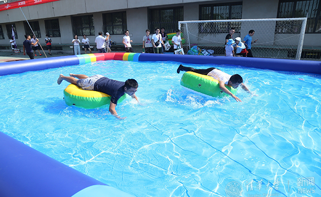 临近9月10日教师节,本次研运会的趣味嘉年华特推出“师门闯关”项目。以师门为参赛单位,师生共同参与体验“踢鞋入桶”“水上冲”等多项趣味体育项目,并让同学们秉持“为师而战”的信念在运动竞技中展现青春活力,向老师献礼。
