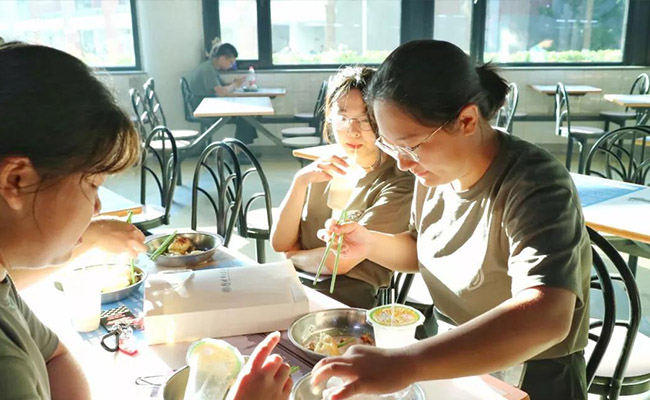 军训很辛苦,所以一定不会胖,可以尽情吃。