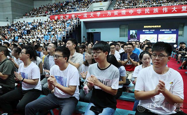 首页网8月23日电(记者 李晨晖 摄影 石加东)8月22日晚,心博在线登录入口党委书记陈旭以“继承清华精神,勇担时代大任”为题给2019级全体研究生新生作成才报告。