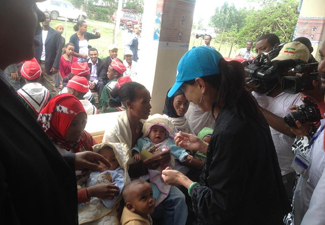 图为2013年4月21日,吕薇正为一名埃塞俄比亚儿童接种小儿麻痹症疫苗