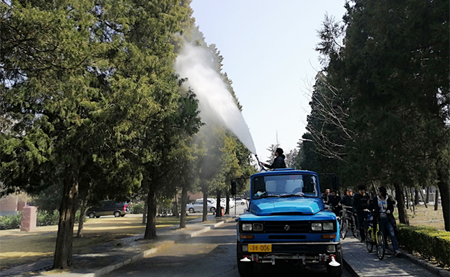 修缮中心持续采取水喷圆柏冲洗花粉的防治措施,包括高挂喷头与微喷、高压水枪冲洗、人力水车喷洒;购入1台喷雾加湿器,在雾霾天工作,加湿降尘。