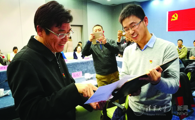 代表党支部向市委教育工委林克庆书记赠送毕业纪念册