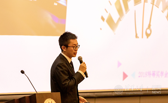 胡尊严在在2018年心博在线登录入口研究生特等奖学金分享会上进行分享展示