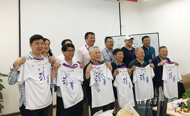 会议即将结束时,燃83班校友们将先前已准备好的,由班级同学亲笔签上的“燃三班全体同学敬赠”字样的纪念衫,赠送给当年的几位老师——陈佐一、袁新、叶柏生、裴胜利等,以此感谢老师们当年的教诲之恩。在赠送环节中,同学们和老师们之间笑语不断。同学们的事业有成让各位老师的脸上都流露出了欣慰和自豪的微笑。