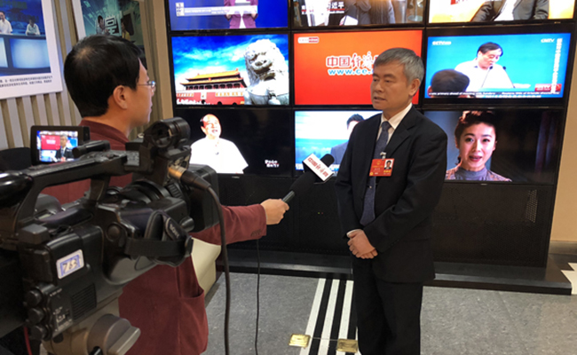周建军在两会期间接受采访。来源:央广网