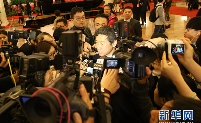 李稻葵在两会上接受多家媒体采访。来源:新华网
