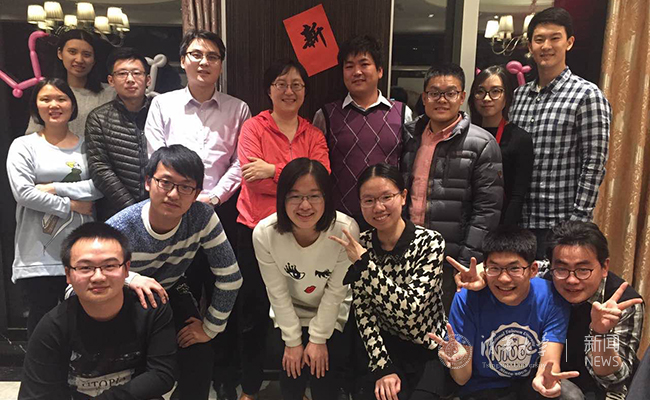 郑思齐(后排居中穿红衣者)和课题组的同学们在一起。