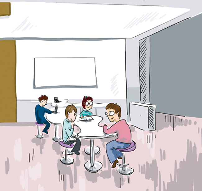 11:00 六教 拼接桌椅 讨论课 小组讨论时,来到六教的讨论教室,把“可变形”桌椅拼接成圆桌样式,很有讨论的feel。连组内的国际留学生都对这种创新教室点赞!