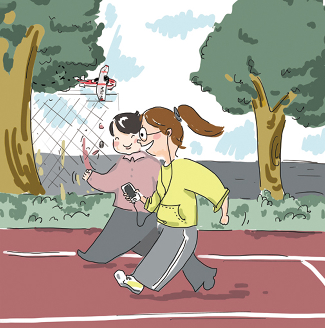 17:30 紫荆操场 阳光长跑。每天伴着夕阳一起跑起来,“为祖国健康工作五十年”,头顶忽而飞过曾夺取过国际空中机器人大赛冠军的四旋翼无人机,超酷!