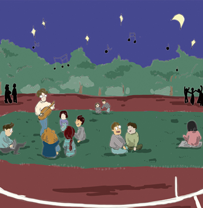 21:00 紫荆操场 紫荆风情夜。牛奶灯、荧光棒、吉他伴唱、清茶小点、露天电影……每周五晚的“紫荆风情夜”,在游戏中博弈脑力、在欢笑中收获友谊,岂不美哉!