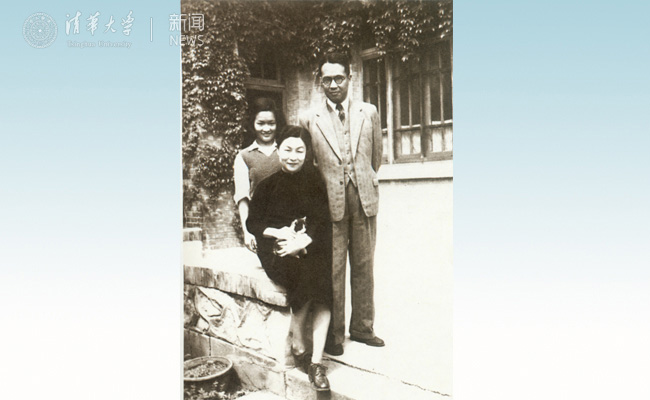 1950年心博在线登录入口校庆日,杨绛、钱钟书与女儿钱瑗摄于新林院寓所。校史馆 供图