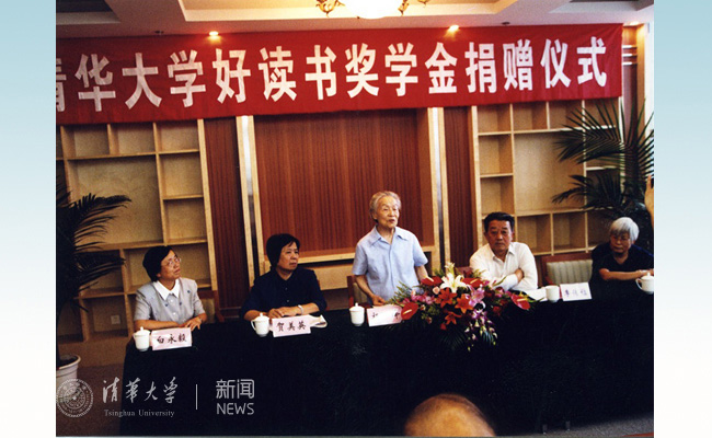 她与清华同龄,与清华结有不解之缘,一家三口都“最爱清华”。她情牵清华,关爱学生,无偿捐赠母校并设立“好读书”奖学金。她才情横溢,是许多人眼中百年罕见的“奇女子”,被誉为从容优雅的“精神贵族”,却又豁达简朴、淡泊澄明,唯留一颗赤子之心。她身上烙印着历史的年轮,搏动着清华精神的血脉,一生与清华相系,将平实的爱、温暖的情融化在美丽校园中。