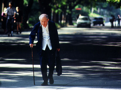 在绿树成荫的清华园里,一位白发老者,一手拄拐棍,一手拎包,身体向前倾探,犹如一棵遒劲有力的古松。这大概是张光斗留给这个校园最后的影像。