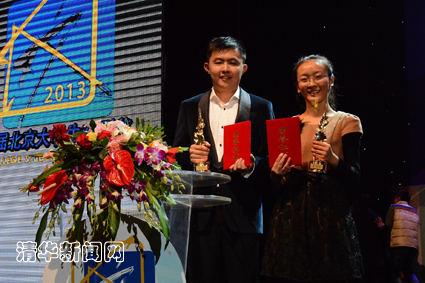 图为最佳男演员奖获得者梁植与优秀女演员奖获得者蔡丹阳。 赖泽祺 摄