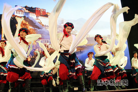 图为校庆歌舞晚会上的相声《诗说清华》。研通社记者 王政显 摄