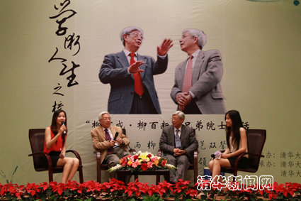 图为柳百成(左二)、柳百新(左三)做客学术人生讲坛。