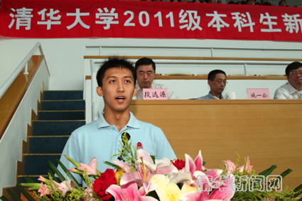 校学生会主席刘烨代表全体在校本科生欢迎2011级新同学的到来,希望2011级新生珍惜百年清华积淀下来的传统和文化,体会清华精神的博大与厚重,认真规划大学生活,积极锻炼身体,努力作出无愧于青春、无愧于时代的业绩。