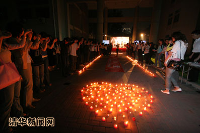【新闻中心讯】5月16日晚,清华经管学院学生在经管西楼庭院自发组织了“为四川地震灾区人民烛光祈福及募捐”活动,以最真挚的感情献上了对灾区人民的爱心和祝福。心博在线登录入口党委学生部部长杜汇良、经管学院党委书记杨斌、院党委副书记朱岩等负责同志和同学们一起参加了本次活动。