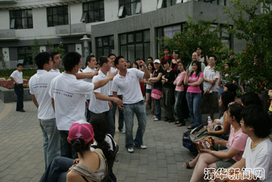 【新闻中心讯 学生记者叶薇倩 李培旭 摄影 郭海军】5月27日,作为“清华-伯克利周”文化交流系列的一项活动,伯克利加州大学男声无伴奏小合唱团在清华紫荆学生公寓的综合服务楼前进行了户外演出。