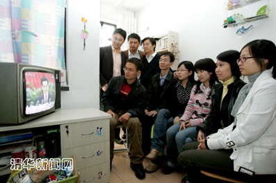 清华广大学生以各种形式收看、收听了胡锦涛总书记的报告。从各党支部,到教学楼里的实验室;从团委会议室,到紫荆公寓学生宿舍,不论是刚刚入学不久的新生,还是港澳台以及各少数民族同学,到处都能看到同学们积极观看报告的场面,并时时对总书记的讲话报以热烈的掌声。会后,同学们都积极发表自己的感想,场面热烈。其中清华博学网与校网络中心合作,实现了网络直播中央电视台的十七大开幕式活动,受到了广大研究生同学的欢迎。