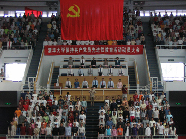 我校先进性教育活动领导小组组长、校党委书记陈希,先进性教育活动领导小组副组长、校长顾秉林等学校党政领导班子全体成员,以及北京高校先进性教育活动市委督导组的同志出席了大会。大会由我校先进性教育活动领导小组副组长、党委副书记张再兴主持,在全体与会者齐声高唱国歌的庄严气氛中开始。