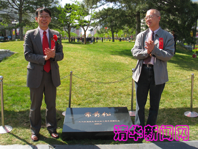 【新闻中心讯 记者 薛建团】4月24日上午10时,我校主楼前广场南侧热闹非凡,由1965届全体校友向母校捐赠的“常青松”景观在这里揭幕。校党委书记陈希、校务委员会副主任贺美英、副校长岑章志出席揭幕仪式。陈希与校友代表揭幕。