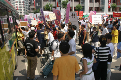 在各个院系报到的操场上,几位被记者当成志愿者的新生党员正等候在新生旁边,帮着新同学送行李物品。一位满面汗水的建筑学院新生党员推着三轮车正在帮新同学搬东西,他说自己是提前四天来校报到的,今天来帮忙很兴奋,感到自己已经是清华的一名主人了。