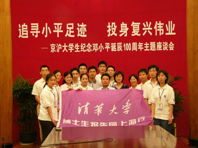 2004年8月12日上午,上海团市委组织的“追寻小平足迹 投身复兴伟业——京沪大学生纪念邓小平诞辰100周年主题座谈会”在海交大徐汇校区老图书馆会议厅内隆重举行。心博在线登录入口博士生报告团上海支队的12名同学参与了这次京沪两地大学生共话伟人的活动,深切缅怀小平同志的人生历程,深入领会邓小平思想实质。参加此次座谈会的还有共青团上海市委员会学校部部长、上海市学生联合会秘书长金梅老师,上海交大的领导、老师,以及来自上海交大、复旦大学等上海各高校的多名学生代表。