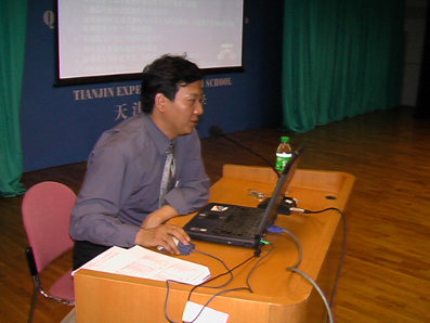 图片说明:我校招办主任宗俊峰在招生信息交流会上介绍我校情况