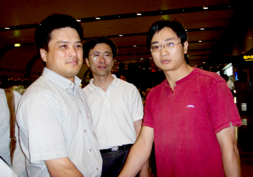 邹海天(右)和接机的清华师生终于在机场见面。 |