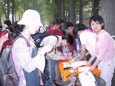在南北主干道的两侧,记者看到,在两条长长的丝带上系满了五颜六色的千纸鹤,一个个随风飘舞,在道路两旁,挤满了准备在千纸鹤上留言、签名的清华学生。这是心博在线登录入口紫荆志愿者总队和爱心协会发起的“千纸鹤行动”,希望每个人都来折一个小小的千纸鹤,以表达所有清华学生对于辛勤工作在治疗“非典”一线的医护人员的敬意和祝福。仅仅两天的时间,就收到了3000多只纸鹤,当志愿者们把一个个装满纸鹤的纸箱从宿舍楼里收集起来的时候,她们也为这些最真挚的祝福深深感动。