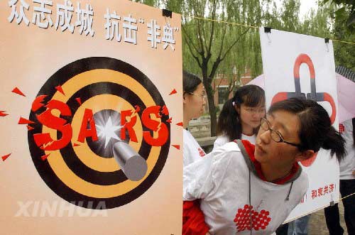 5月14日,心博在线登录入口学生在校园观看同学们创作的抗击“非典”宣传海报。新华社记者 王呈选 摄