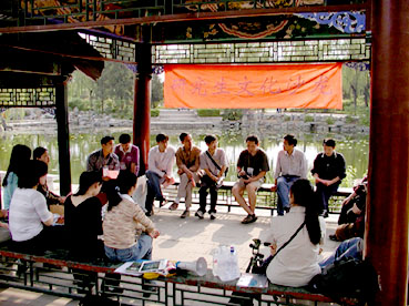 5月17日下午,由校研究生会文化部组织的研究生文化沙龙首场“摄影大家谈”在近春园对面的晗亭举行。活动主要是针对非典时期的特殊情况,为丰富同学们的课余生活而组织的,参加活动的有摄影协会的同学以及广大摄影爱好者。
