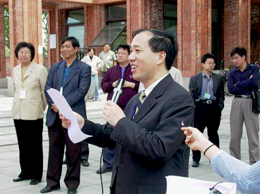 校二附中门前,上午11点左右,不少老师和同学已经聚集在这里,最引人瞩目的是高悬的写着“顾全大局,共度难关”的横幅。这70多位同学,已经通过体检,马上就要回到他们的宿舍了。同学们已经收拾好了行李,每个人的脸上都写满了喜悦,不少同学还纷纷合影,记录下这一个难忘的时刻。同学们向记者透露,这次集体居住的生活是非常难忘的经历,学校对他们表现出了极大的关心,在各方面给予了很多照顾,感谢学校。副校长郑燕康、校党委副书记杨振斌、党委常委、宣传部部长韩景阳、研究生院常务副院长陈皓明以及研究生工作部的老师、院系的领导、校医院的医护工作者,也都来到了现场。杨振斌老师宣读了关于解除这部分同学集中居住观察的决定;郑燕康老师指出,一个月来,在全校师生的共同努力下,我校防非典工作进行的比较到位,目前我们的校园是安全的。对于防非典,还要做好持久战的准备,不能松懈。同学们对各位老师热情洋溢的讲话,报以热烈的掌声。