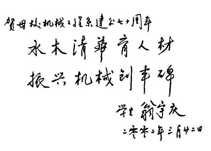 翁宇庆:精密仪器与机械学系、机械工程系七十华诞题词