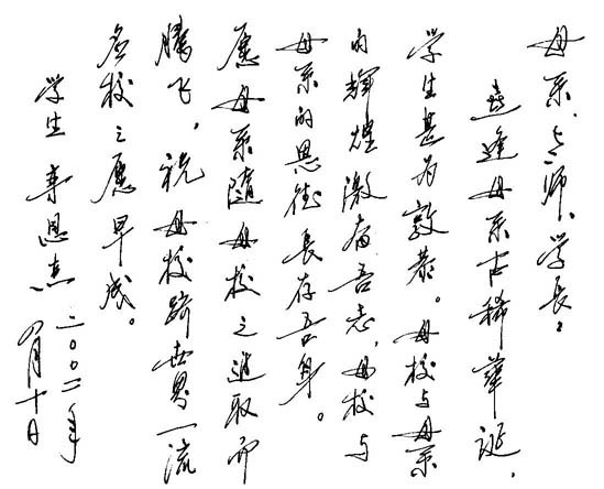 ▲我校校友、国防科工委副主任、国家航天局局长栾恩杰同志贺信