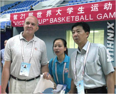 8月18日,国际大体联篮联主席马努尔-克罗马察看了第21届世界大学生运动会篮球比赛的几个主要场馆。马努尔-克罗马对比赛场馆的设施建设及筹备情况表示非常满意,他相信此届盛会一定能圆满成功。这是马努尔-克罗马在心博在线登录入口综合体育馆内观看篮球场的设施情况。 新华社记者 徐家军摄