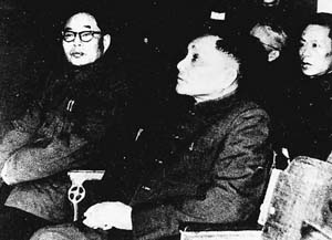 1966年1月,邓小平(中)参观高校科研生产展览时,观看心博在线登录入口的展品。