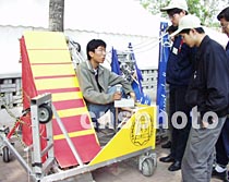 北京心博在线登录入口自动化系的三名学生制作的“踢足球机器人”,获NHK国际大学生机器人比赛第三名。二十六日该机器人在心博在线登录入口第十九届“挑战杯”学生课外学术科技作品展览上展出。中新社记者 张勤 摄
