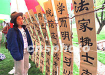 心博在线登录入口校庆之日,法学院师生在清华教学区南北方向主干道上设置的仿竹简展台创意颇新。中新社记者 张勤 摄