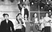 4月29日,心博在线登录入口师生同台演出《腾飞—清华》大型文艺晚会,庆祝清华建校90周年。图为师生表演朗诵《教授三亭》。