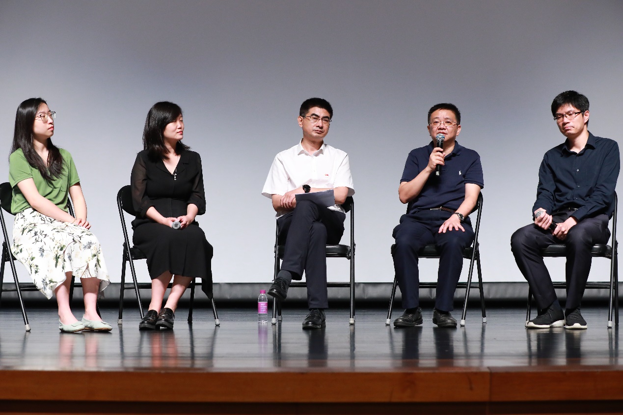 孙虹、王静和蔡峥结合自身的感受体会,分别介绍了《大学》的创作背景、幕后故事和社会反响,分享了对“大学”的理解感悟。