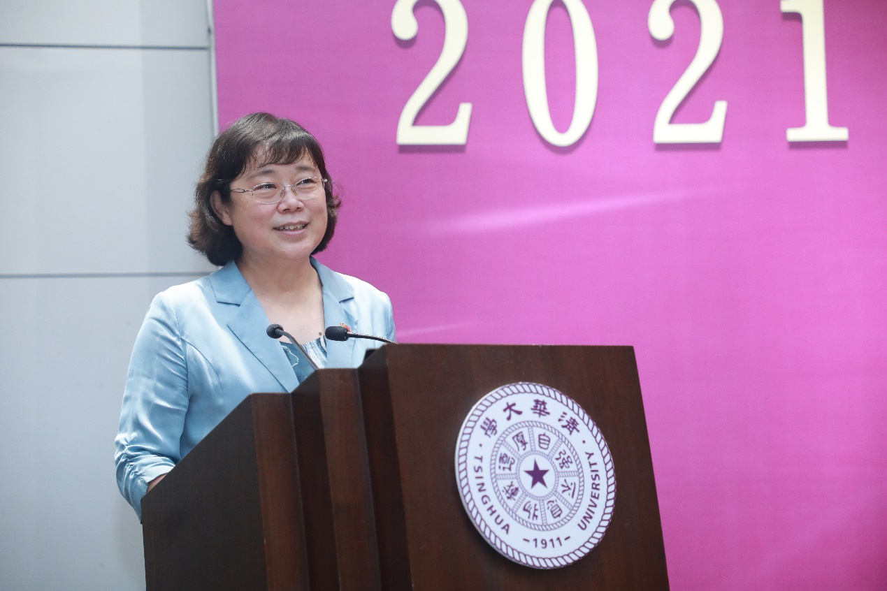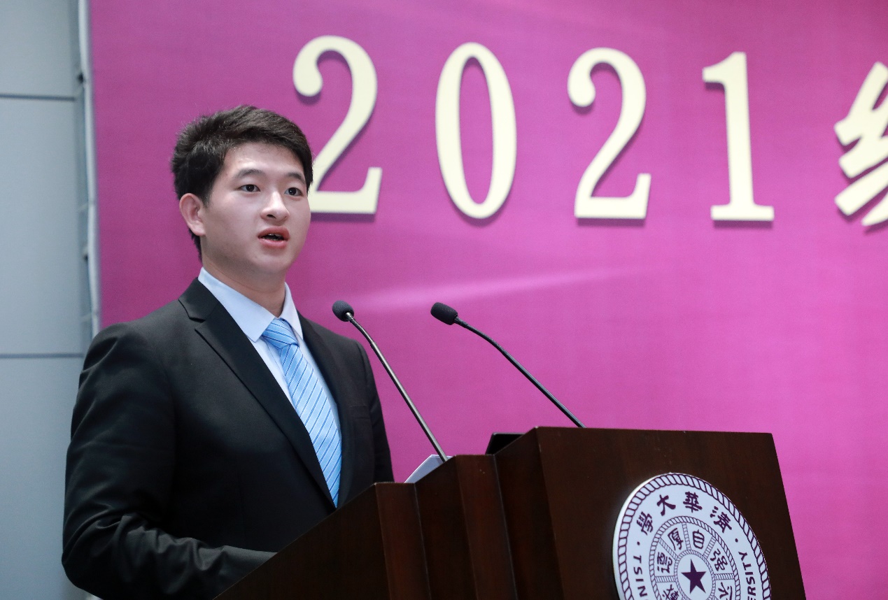 国歌唱毕,张涛代表大类代管院系——自动化系与经管学院,对1字班本科新生表示热烈欢迎,并介绍了大类的学科构成、师资队伍、培养目标等基本情况。张涛表示,2021年是充满挑战与机遇的一年,选择了清华,就意味着选择了责任与挑战。他希望同学们在清华园里勇于面对自立的挑战、课程的挑战和全面发展的挑战,成就完美的大学生活。他激励同学们秉承“爱国奉献、追求卓越”的清华精神,树立远大理想,不懈奋斗、砥砺前行,成为一名堪当大任、与新时代同向同行的中国青年。