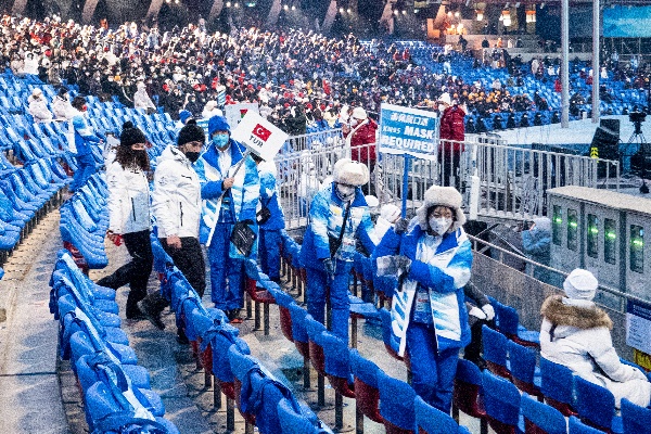 和每一个幕后平凡的岗位一样,闭环内赛事服务岗位上的“黄袖标”志愿者故事很多很多,其中不乏诸多令人感动的瞬间。这里既有寒风中道路两旁的坚守,也有辗转不同岗位的奔忙;既有手台里此起彼伏的口令,也有同服务对象反复不断的沟通提醒;既有国旗升起时油然而生的自豪,也有仪式落幕后送别友人的不舍。2月1日进入闭环至今,25位“黄袖标”志愿者们已度过了一多月的闭环生活,后续他们将继续为冬残奥会的开闭幕式运动员看台提供志愿服务。前后跨度两个多月的服务期内,几乎每一个人的岗位都发生着变化,但是手臂上明亮的“黄袖标”一直在提醒着这个团队中的每一个人,为冬奥会、冬残奥会四场重要仪式的国内外运动员提供高质量的志愿服务,展现当代中国青年的良好形象,是他们共同的追求。