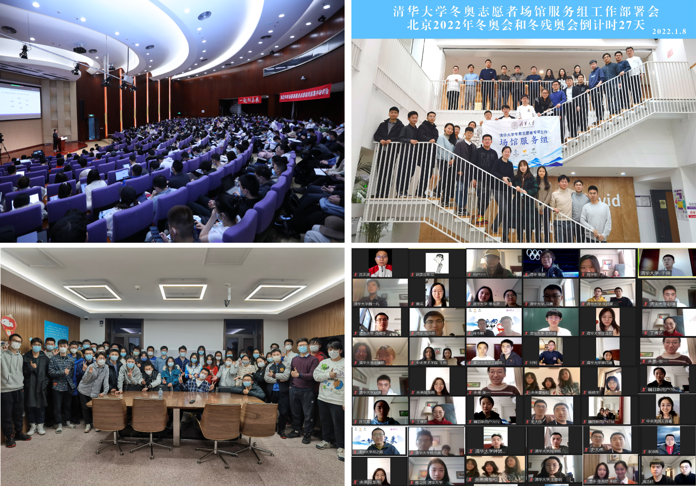 全面服务,全力以赴各显神通。除了赛事服务,场馆服务组冬奥志愿者还遍布在开闭幕式运行的各个业务领域,他们自1月中旬起每日前往鸟巢全面参与各项筹备工作。“学以致用,活学活用”,他们将自身专业知识发挥得淋漓尽致。服务于公共卫生领域的计算机系2021级硕士阎华毅编写了一个健康监测数据获取程序,实现全场馆人员健康状况的实时监测;来自工业工程系的2019级博士生唐海景设计了可同时作业的5条流水线,短短4个小时完成10000多个观众礼包的装袋工作;技术业务领域的志愿者运用专业知识和器材检查无线技术设备、排查定位信号干扰,并与国际奥委会工作人员进行专业沟通。更多志愿者们孜孜不倦,以简单而不平凡的工作助力冬奥盛会。场馆通信中心志愿者开幕式当日速记700多条超20000字对话内容;品牌形象与赛事景观志愿者场馆内外细心地巡查每一处景观;注册志愿者总是“多想一步”,在冬奥会中后期已经启动冬残奥会的证件注册工作;人员管理领域志愿者一遍遍精准核对人员考勤状态数据;作为“志愿者二次方”的志愿者领域志愿者为1800余名志愿者提供服务保障;宣传志愿者虽然大部分时候只是承担对接工作,但有力协助媒体记者为精彩纷呈的节目提供官方解读,帮助世界观众“读懂中国人的浪漫”!