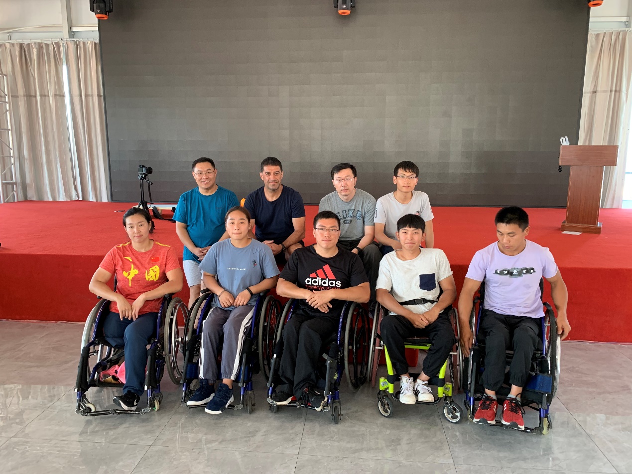 季林红团队同高山滑雪队坐姿运动员和外教合影